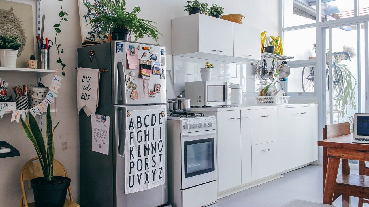 Karena memang kami bekerja di bidang kreatif, di rumah terdapat ruang kerja yang memang didedikasikan untuk pekerjaan kreatif. Bisa dibayangkan, rumah kami dipenuhi berbagai jenis peralatan menggambar, stok kertas yang selalu ada, tumpukan buku sketsa, berbagai jenis lem, gunting, dan material-material lain. Kami juga terbiasa menyimpan benda-benda yang mungkin buat orang lain dikategorikan sebagai sampah. Selain itu, di dalam rumah juga banyak sekali tanaman, buku-buku, dan tentunya komputer dan iPad. Kami tidak pernah memaksa atau mendoktrin anak-anak untuk mengikuti ‘jejak’ orangtuanya untuk suka menggambar, atau jadi pekerja seni, mencintai tanaman, atau apapun, tapi kami percaya semua yang ada di dalam rumah adalah benda-benda yang bisa mereka jelajahi dengan cara dan pandangan mereka sendiri.